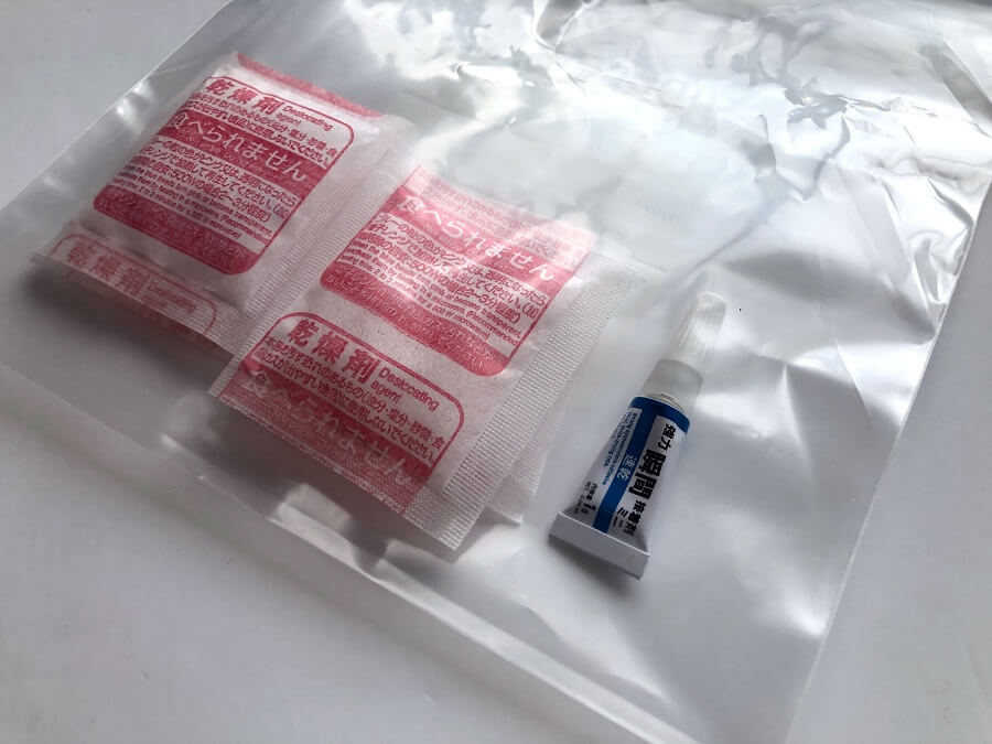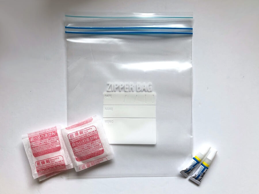使うのは、ジップ付き保存袋とシリカゲル乾燥剤のみ!