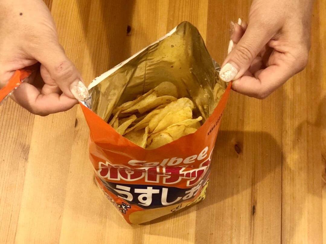 そんな悩みを解消する画期的な袋の開け方をネットで発見!ポテトチップスで有名なカルビーが命名した、その名も「スナックボウル開け」。