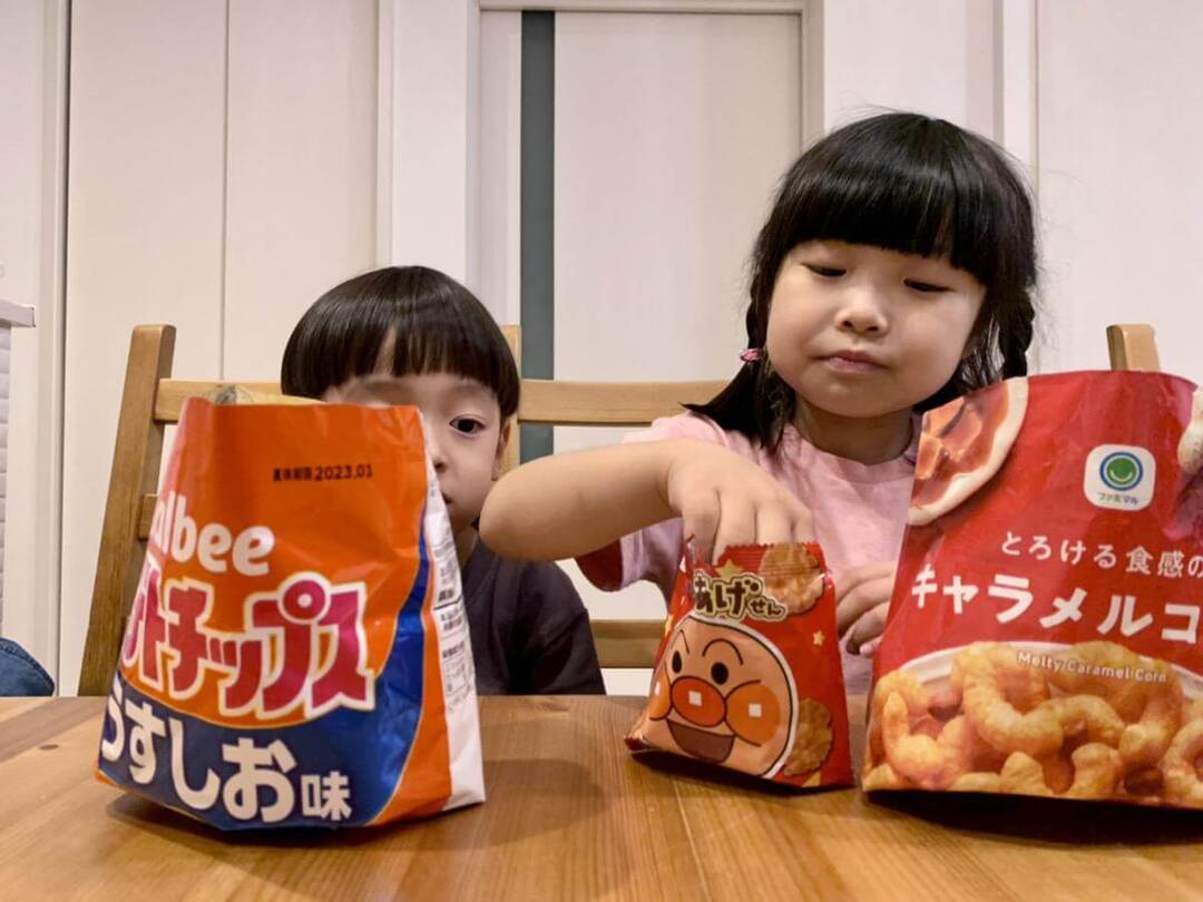 袋の奥深くまで手を入れなくてもいいので、子どもの手や手首がお菓子でベタベタ…というあるあるも防げますよ。(こっそりソファーや洋服で拭くんですよね…)