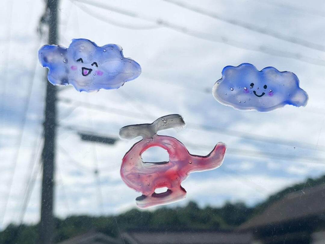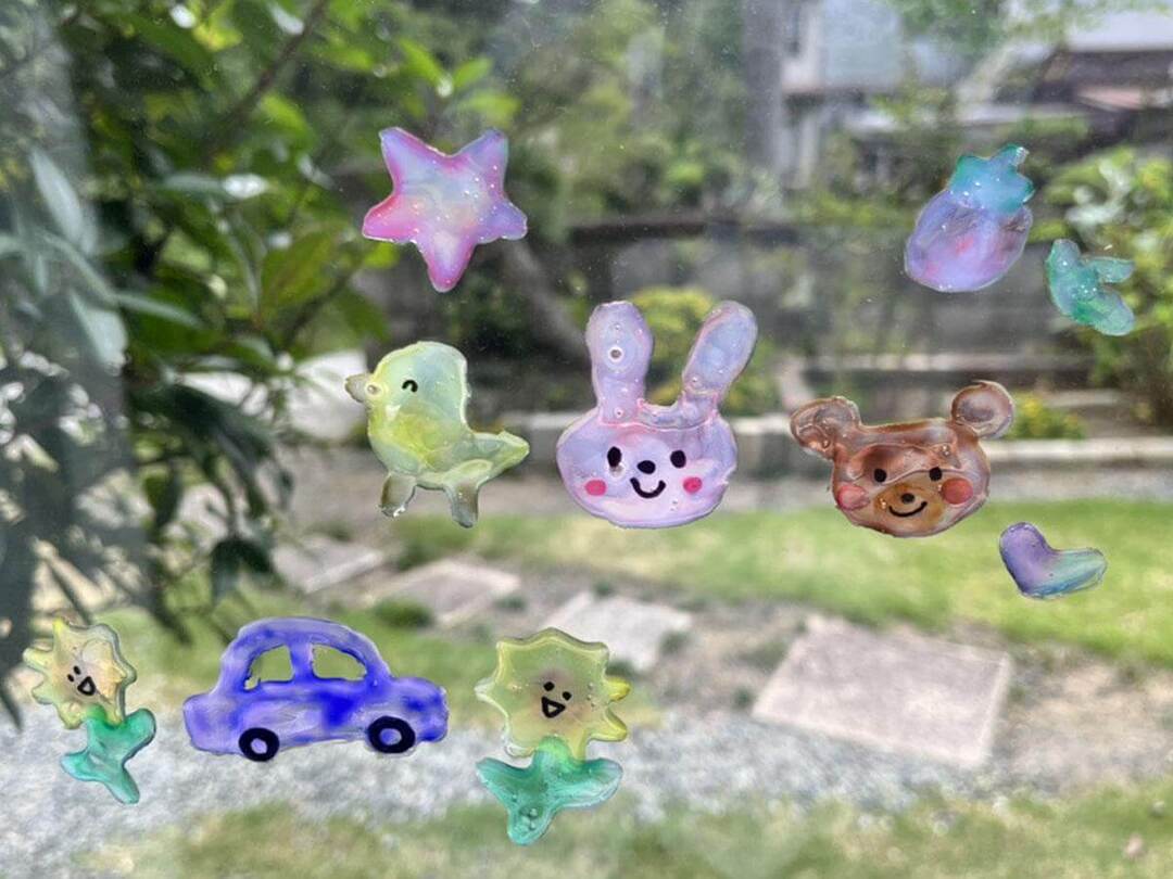作ったぷっくりシールは、紙はもちろん窓や鏡などのツルツルした場所に貼って楽しめます。