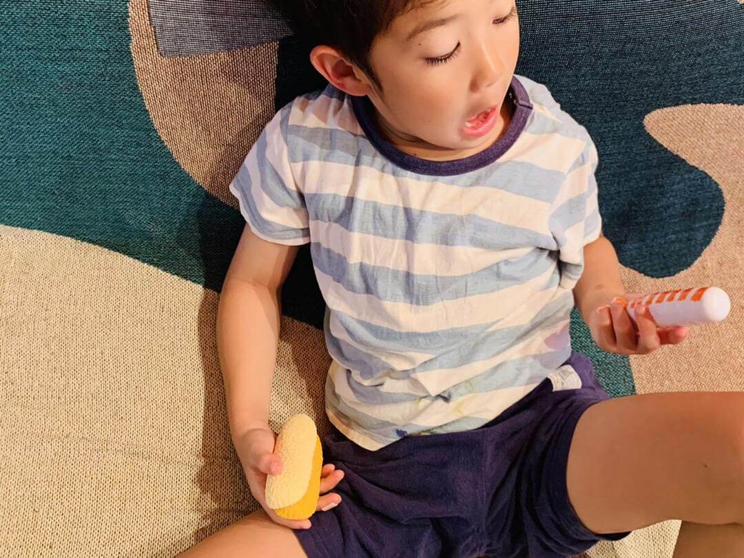 リアルなエビフライのおもちゃは、息子に大ヒットした様子。1日中遊んでいました♪