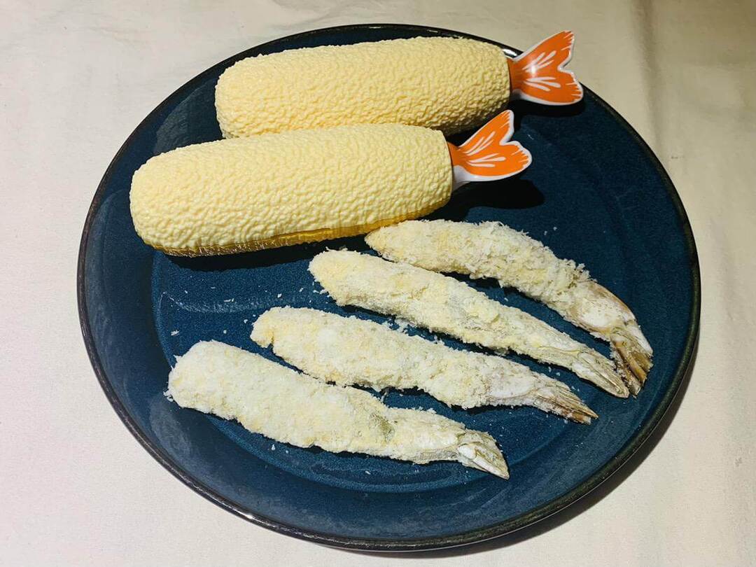 揚げる前と揚げたあとのエビフライを並べてみると…ほぼ色味が一緒!
