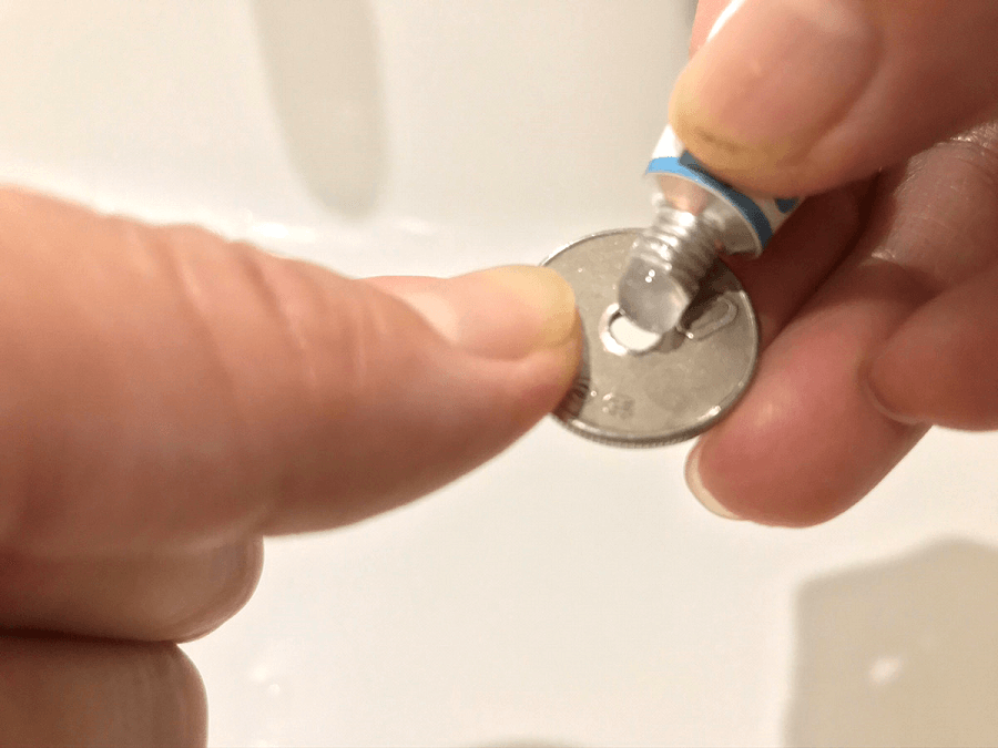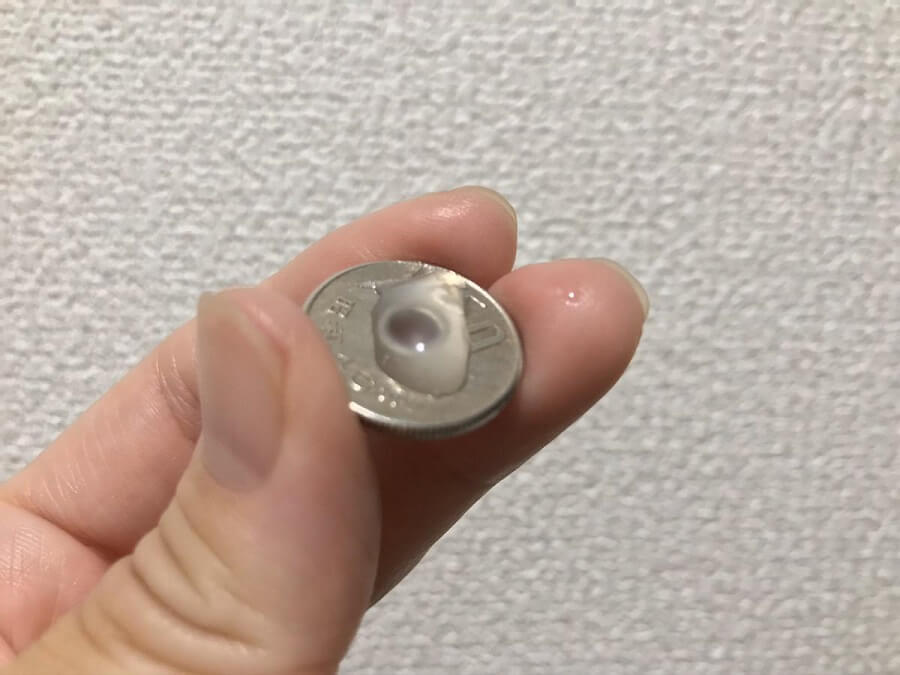 ビニールポリバルーンを50円玉の穴部分に塗っていきます。