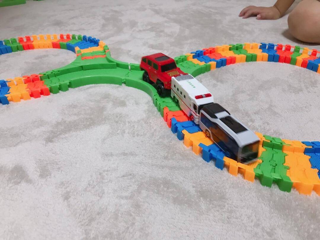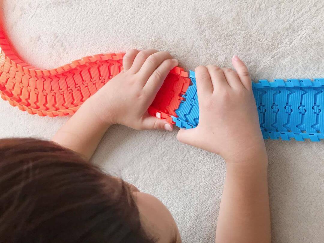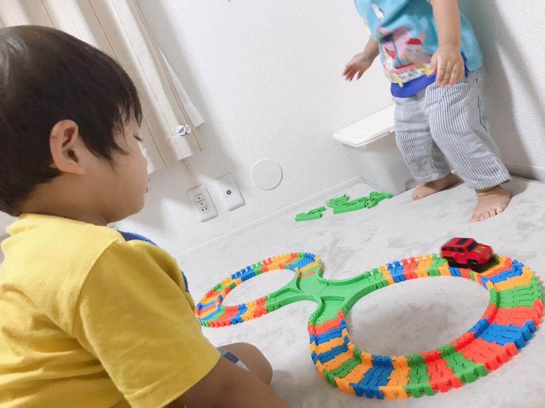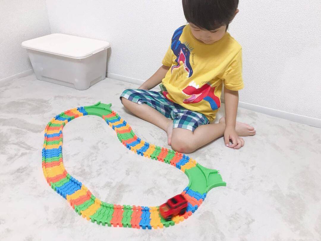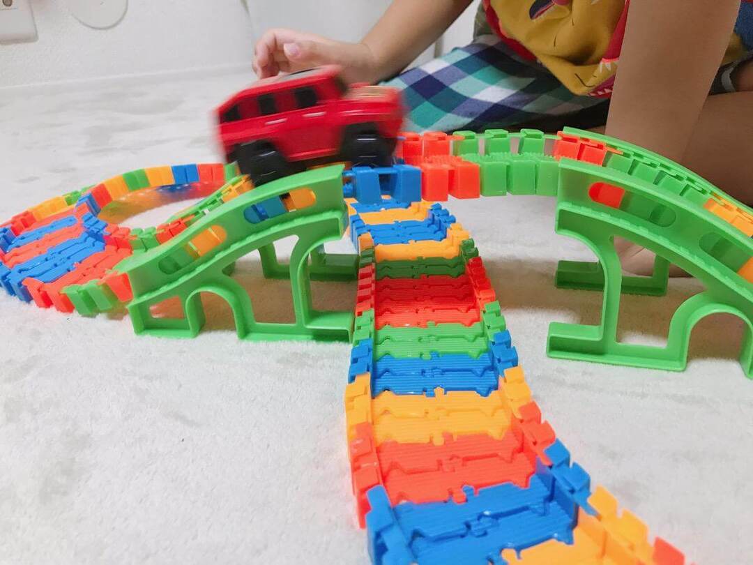 西松屋の「くねっとロードセット」は、子どもならではの自由な発想で遊びの幅がどんどん広がります。発想力を鍛える知育としても効果がありそうです。レールは5歳の子どもでも簡単に組み立てができ、夢中になって遊んでいましたよ。