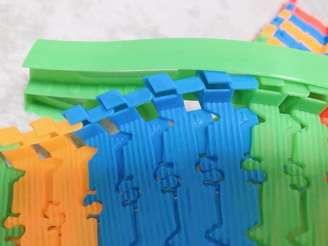 くねっとロードは一つずつ外れるようになっているのですが、ジョイント部分を差し込めば簡単にはまります。1つ1つのパーツが細いので、細かいカーブも作れるのが特徴。