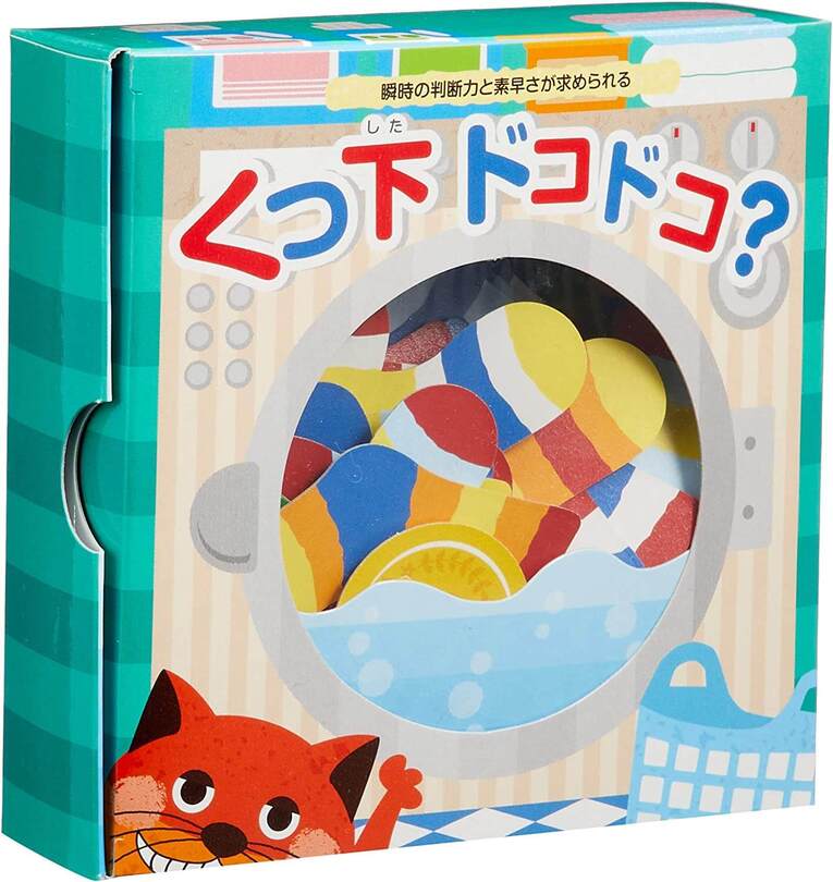 「靴下かたっぽどこに行った!?」という家事あるあるなシュチュエーションをルールに落とし込んだ、ユーモアたっぷりな「くつ下ドコドコ?」。