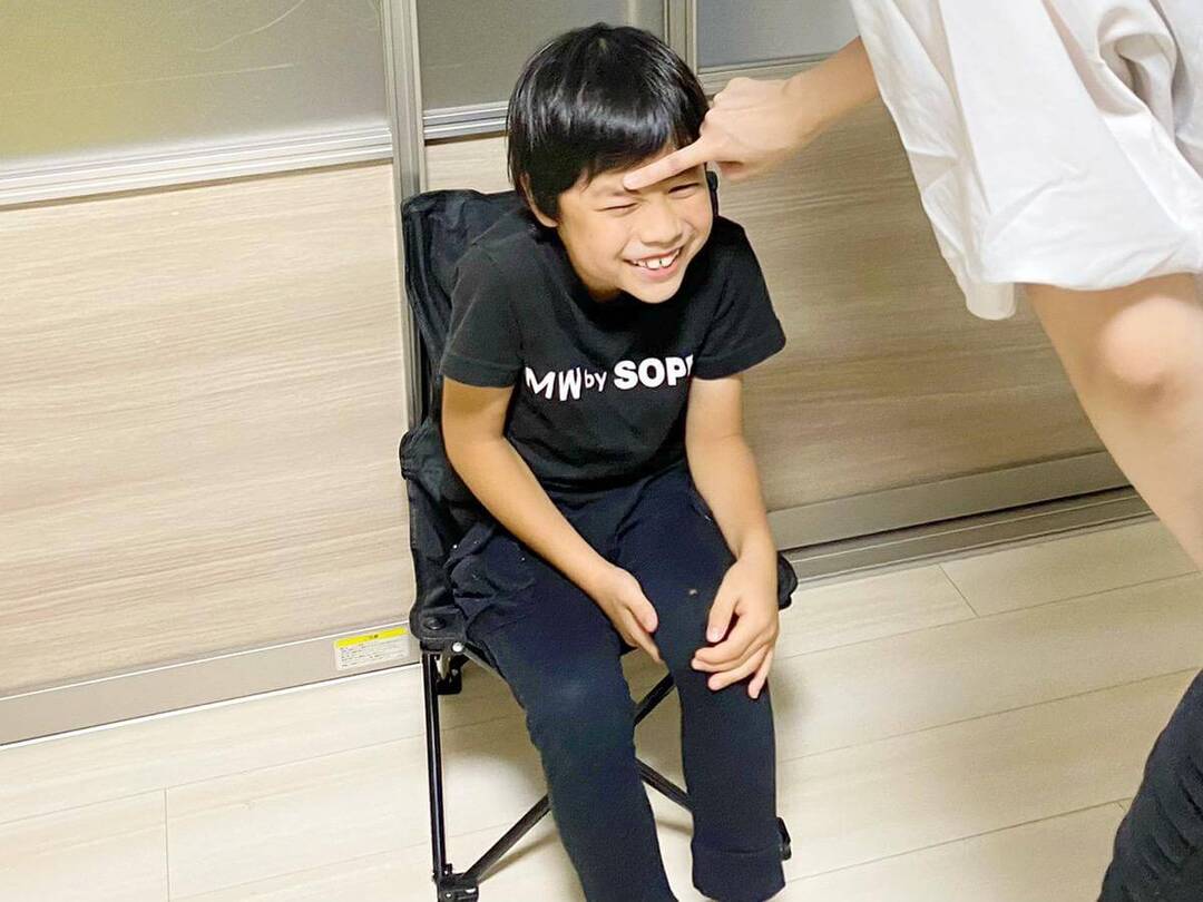 「本当に立てないの?」と笑っていると「じゃあママやってみてよ!」とのこと。今度は場所を入れ替え筆者が座り、息子に人差し指でおでこを押さえてもらいました。