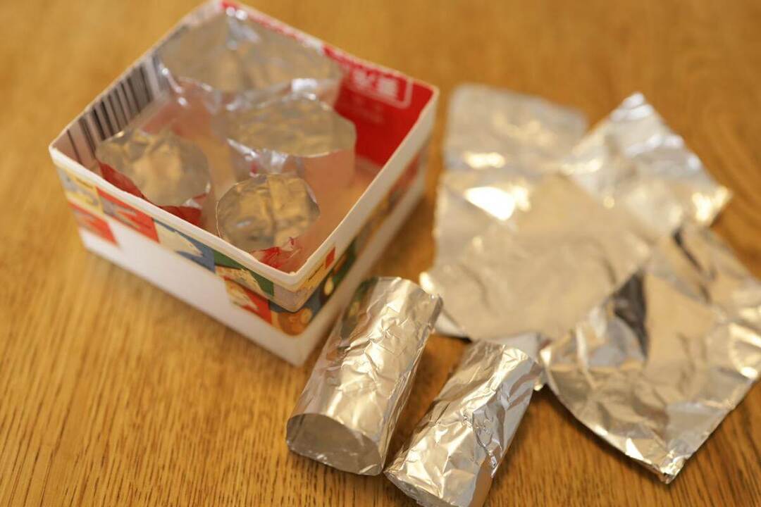 4cm幅に折ったアルミホイルを輪っかになるよう丸めます。この輪っかは箱の中に入るだけ作ります。