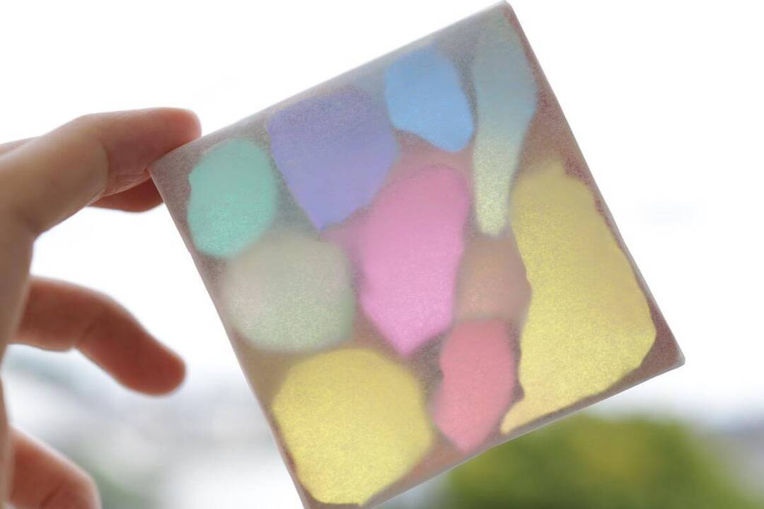 使ったカラーセロハンは赤・黄・青・緑の4色でしたが、重ねるように貼り合わせたので、もっとたくさんの色が浮かび上がりました。