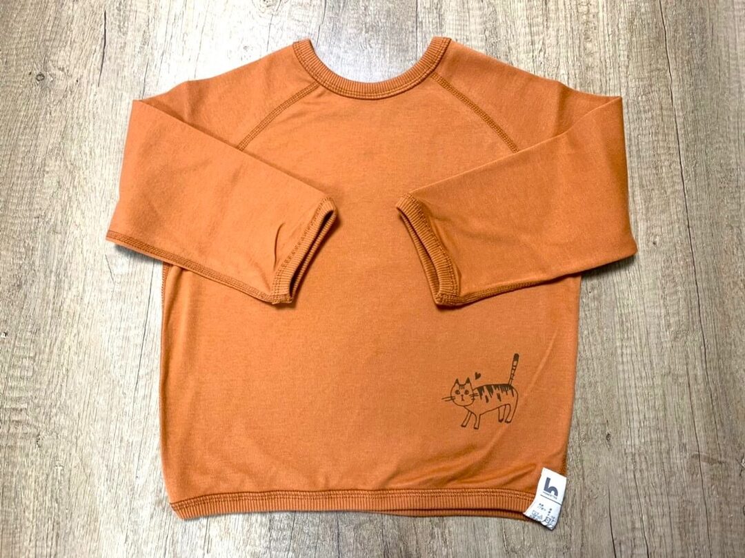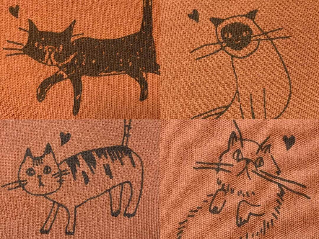 購入したオレンジの長袖Tシャツにはキュートなネコのイラストが描かれていました。それぞれ猫種が違うので、気分によって変えられるのがいいですね。