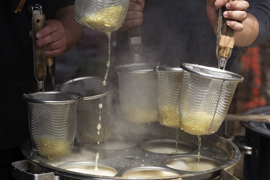 「鉄砲ザル」の由来はラーメンの麺の数え方から。1玉、2玉と数えることから、「玉(弾)を入れる」ザル=鉄砲ザルと名づけられたそうです。