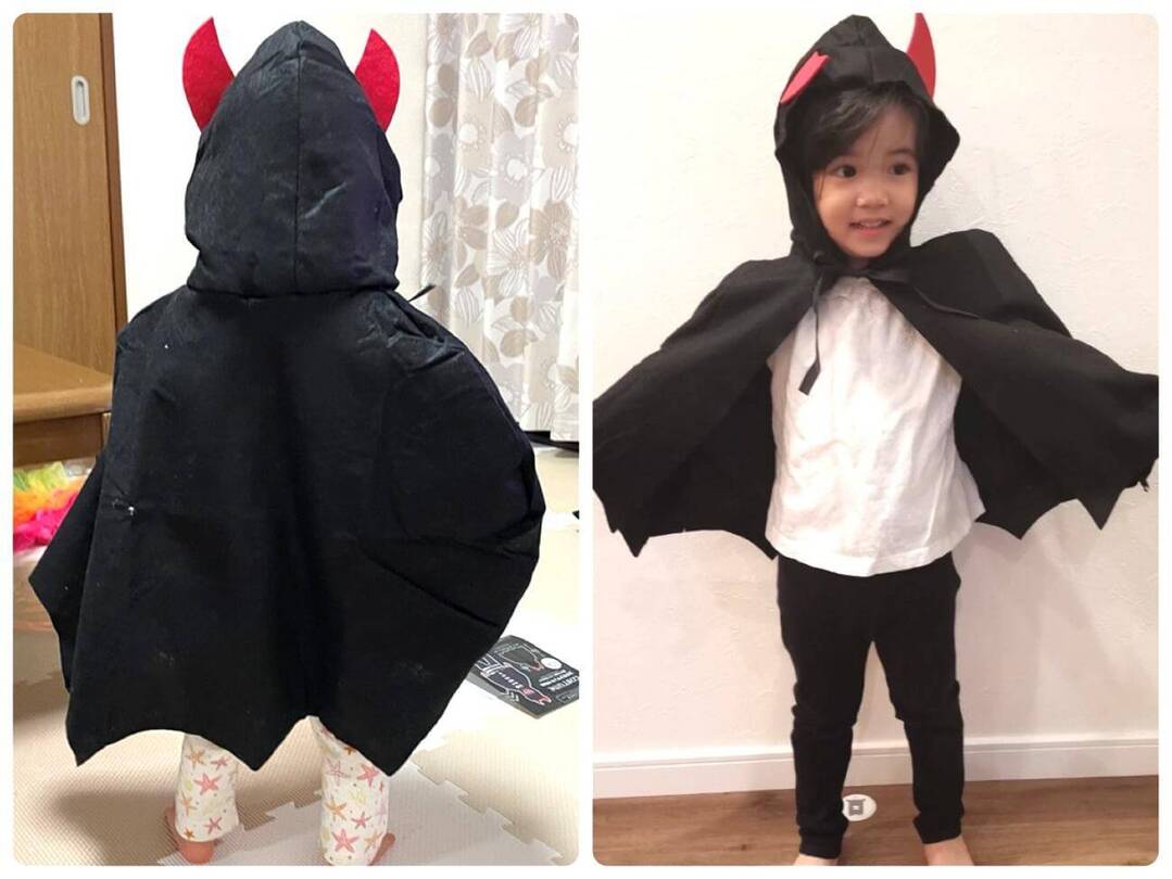 着用方法はかぼちゃのマントと同様に羽織るだけ!やわらかいフェルト生地なので子どもたちもとても着やすそうでした。