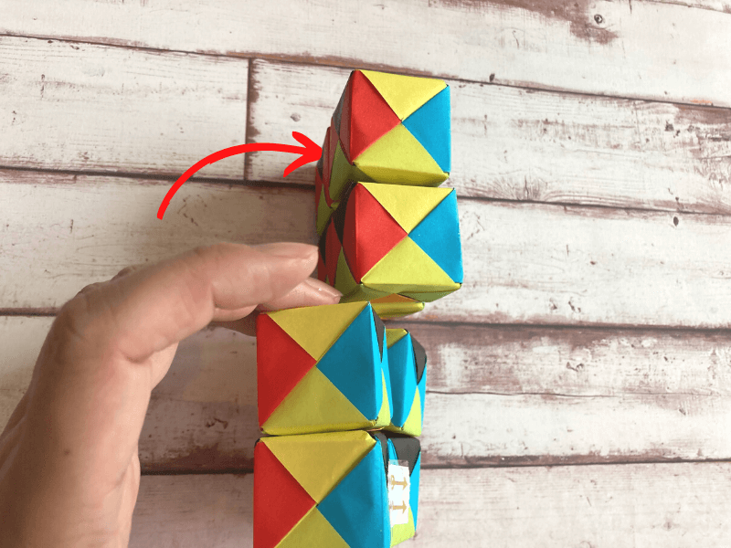 8つのキューブを縦に並べ、一番上と一番下のキューブを横につなぎます。