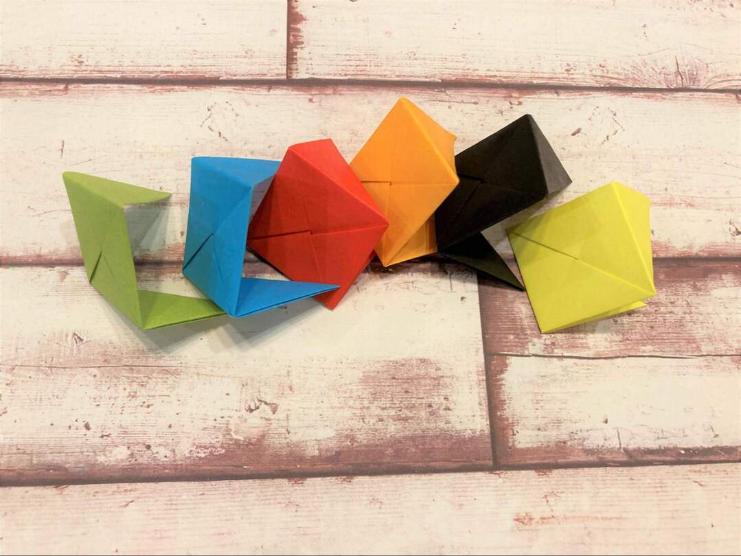 6枚で1つのキューブ、全8個を作るので計48枚の折り紙が必要です。