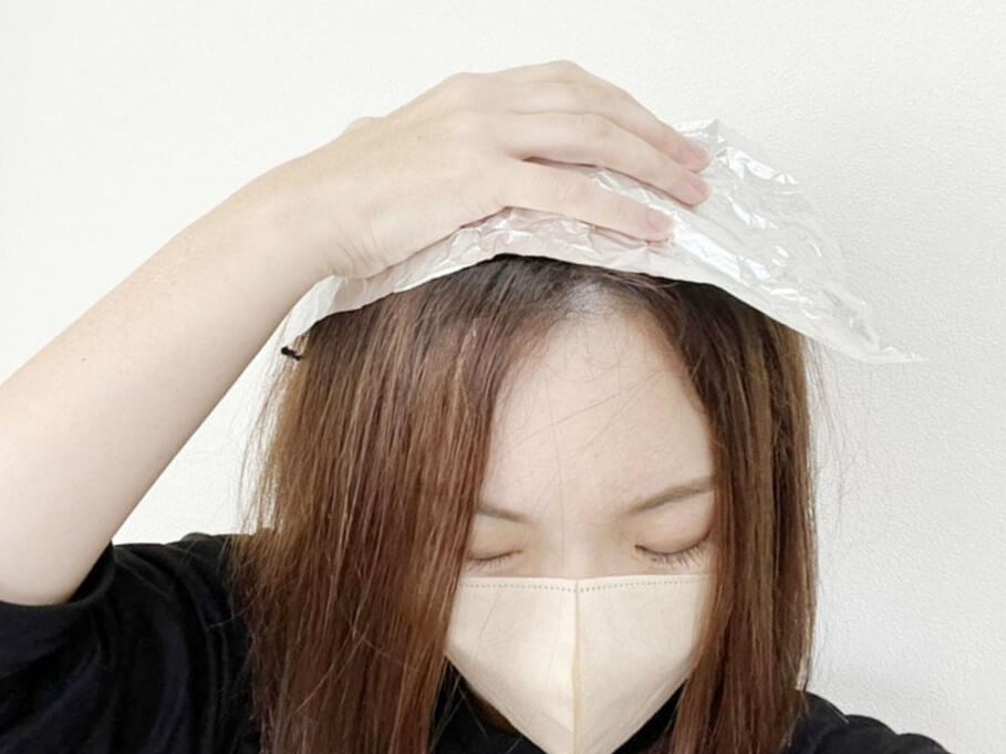 さきほどスプレーをかけた面を下にして、アホ毛が気になる部分にアルミホイルをのせます。あとは上から下に、ヘアブラシでとくようにアルミホイルを撫でつけていくだけ♪