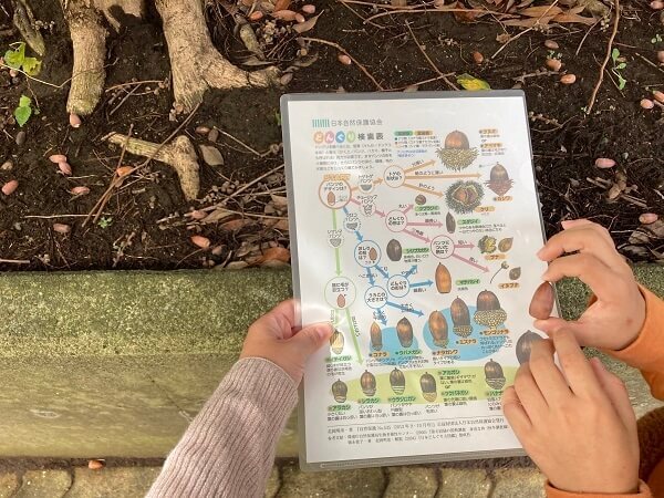 『どんぐり検索表』を使うことで、ふだん何気なく拾っているどんぐりのルーツがわかり、子どもたちもすっかりどんぐりに愛着がわいたよう。「友だちにも教えてあげたい!」と目を輝かせていましたよ。