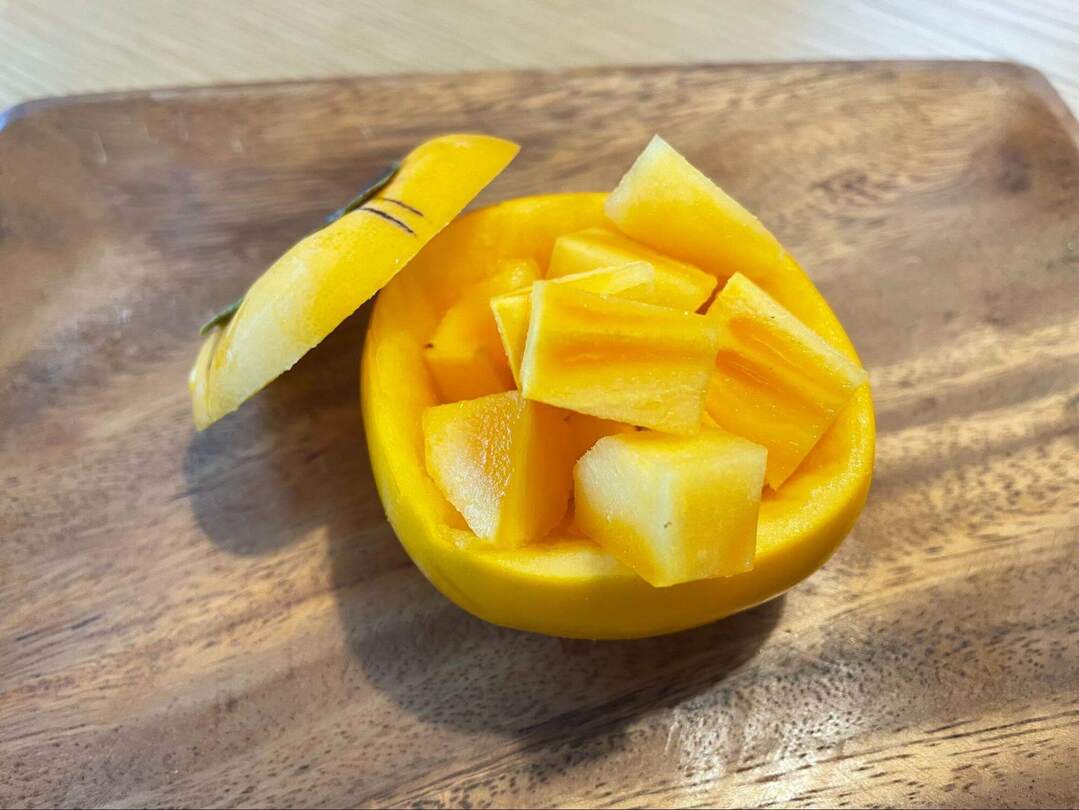 こちらは柿の果肉をくり抜いて皮を器にするアイデア。柿を丸ごと活用でき、見た目のインパクト大!イベントやパーティーでも活躍すること間違いなしですよ。