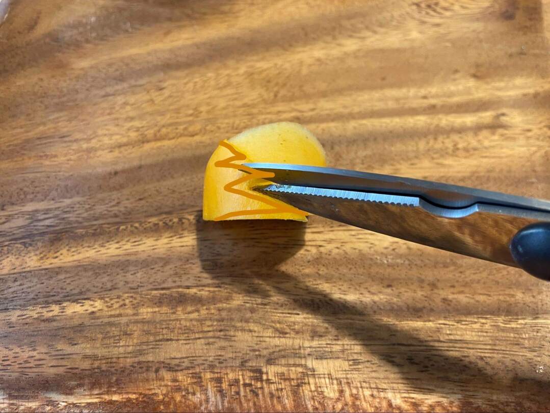 キッチンバサミでにわとりのとさかのように“トゲトゲ形”にカットしたら…