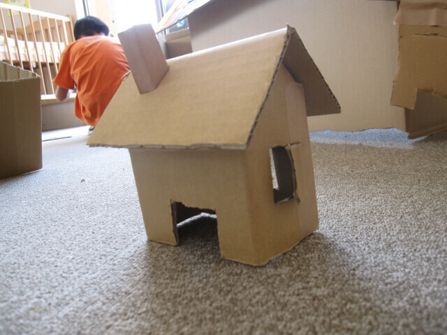 今木:ほかにも…たとえばごみの日を待っている解体した段ボール。段ボールはそのまま立体の展開図になるので、ぜひ捨てる前に開いてお子さんに組み立てさせてみましょう。逆に組み立ててあるものを展開させるのもいいですね。