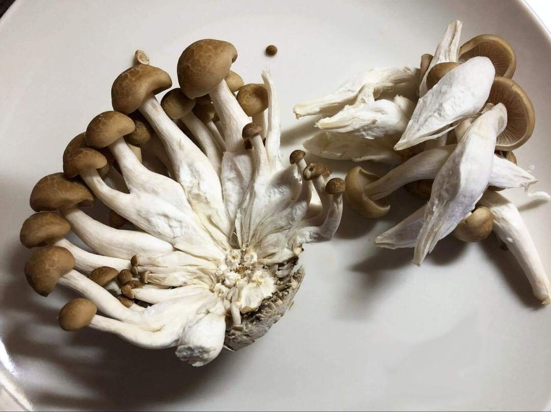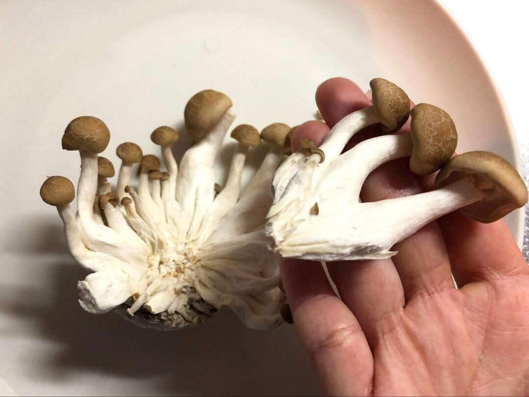 ある程度とれたらひっくり返していたぶなしめじを元の位置に戻し、引き続き端から抜いていきましょう。中央部分は抜くというよりもはがすような感覚で、気持ちいいほど簡単にとれます。