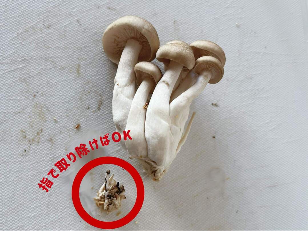 スーパーなどで袋詰めで販売されているぶなしめじには“石づき(菌床部)”がついていることがほとんど。