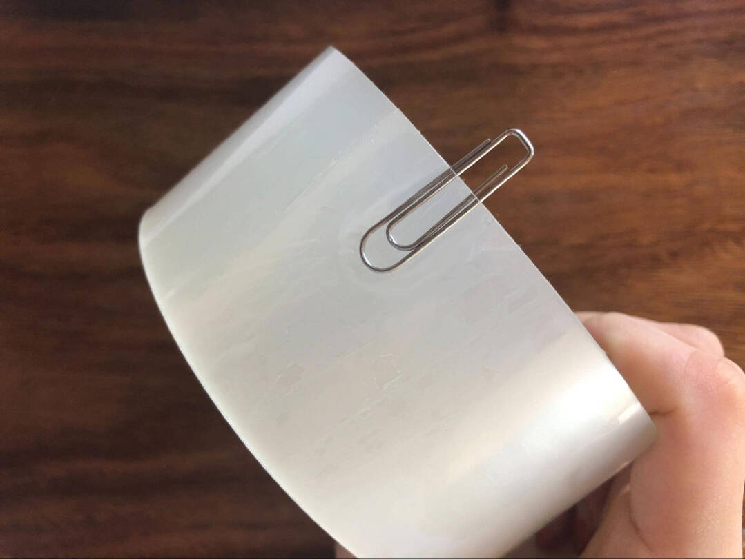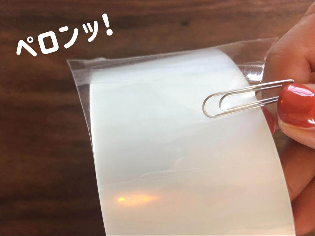 クリップを持ち上げれば、写真のように端がペロンとはがれます。爪を使って探したり、テープの角からチマチマとはがす必要もありません!