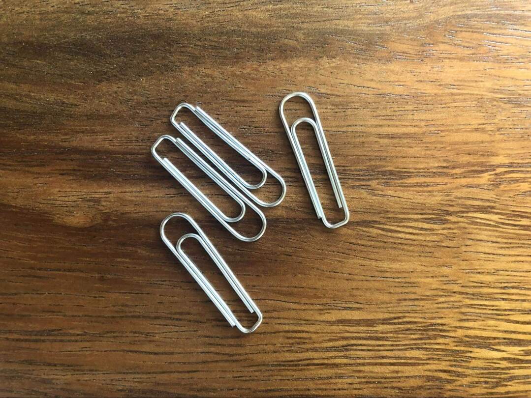 裏ワザに使うのは、書類やメモをまとめる際に役立つ「ゼムクリップ」。100均などで手軽に購入できます。