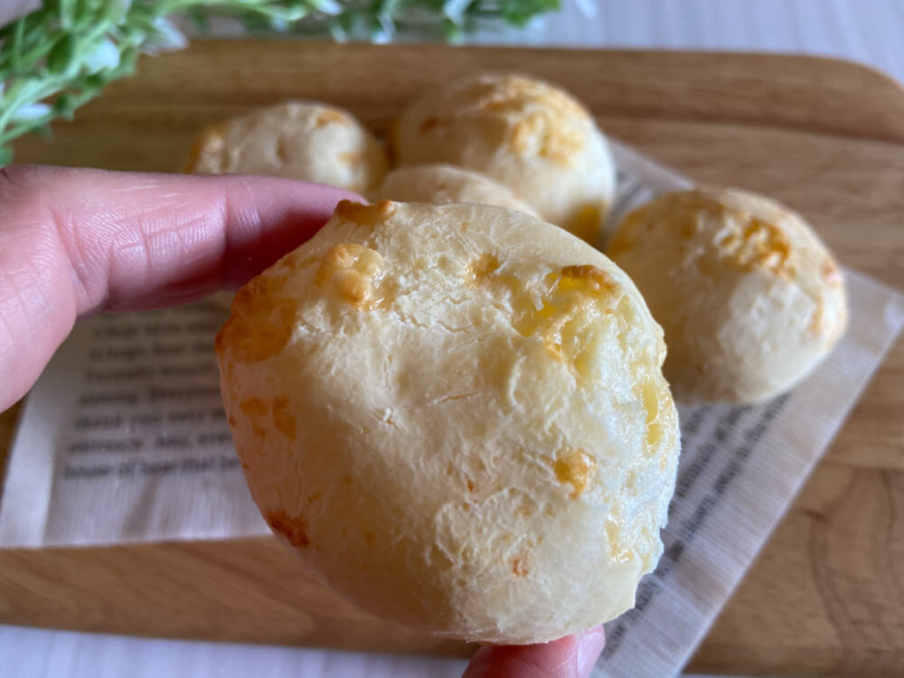 「ポンデケージョ」とはブラジル発祥の、チーズとタピオカ粉から作られたもちもちのチーズパンのこと。「ポン」はパン、「ケージョ」はチーズという意味だそう。今ではパン屋やコンビニなどでも見かけるようになった、ミニサイズで食べやすい人気のパンです。