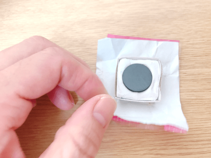 最後に裏面を両面テープでとめれば、チロルチョコマグネットの完成です!