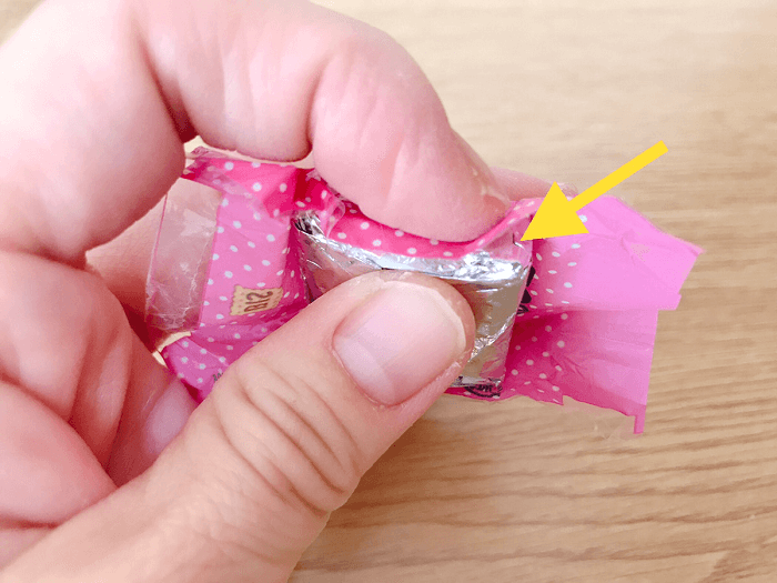 チロルチョコの包み紙&銀紙を裏面にしておき、その上に土台をのせます。