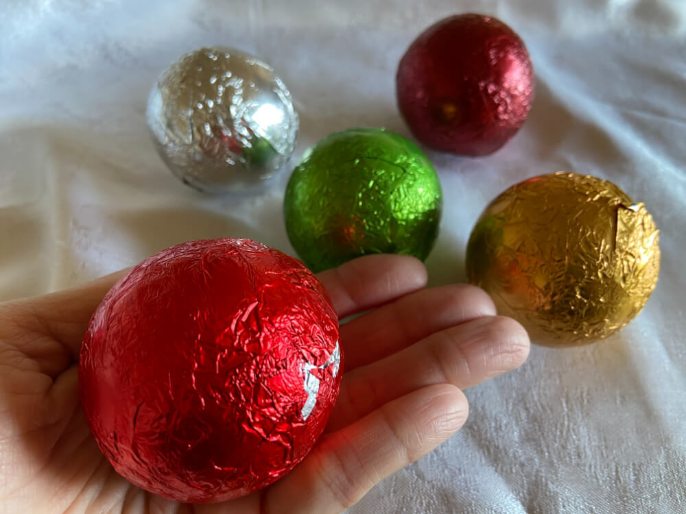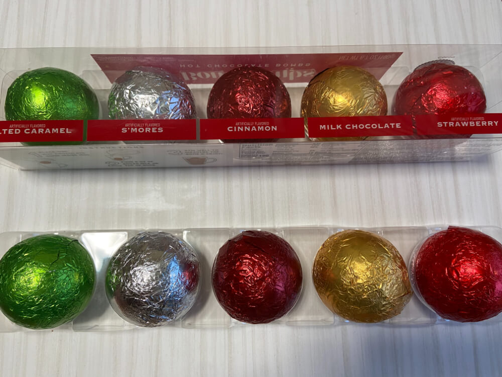 数あるクリスマスアイテムの中でもキラリと輝く存在感を放っているのが「ホットチョコレートボム」。クリスマスツリーのオーナメントかな?と思ってしまいそうな見た目ですが、実はこれ、甘くとろけるおいしいドリンクの素なんです。