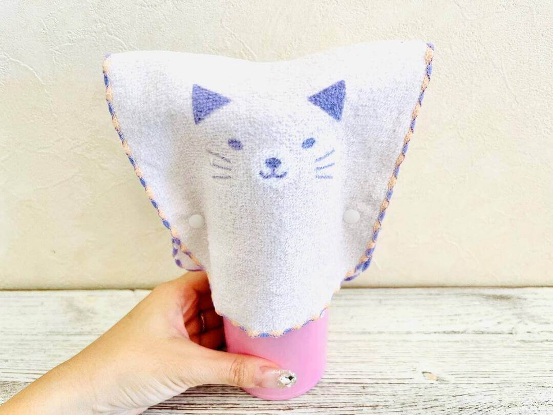ポイントは周囲4か所にあるスナップボタン。ボタンをとめると袋状になるため、ペットボトルや水筒などにかぶせることができます。