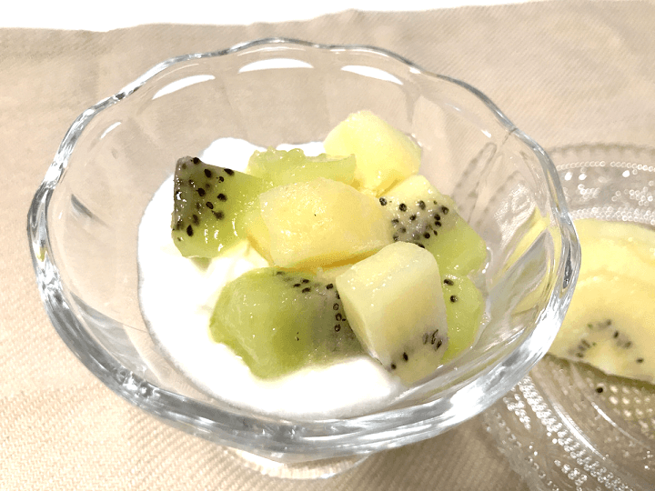 小さくカットしてヨーグルトにトッピングすれば、キウイのシャリシャリ食感が楽しいフローズンヨーグルト風に味わえます。