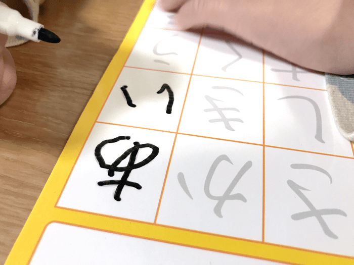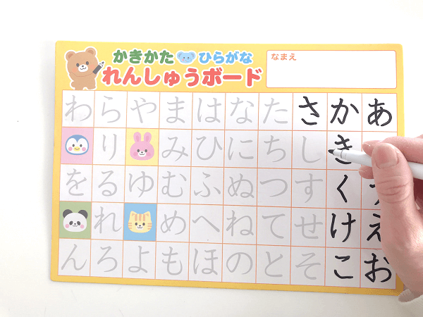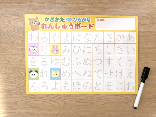 ホワイトボード式のボードに50音がなぞれるように書かれています。