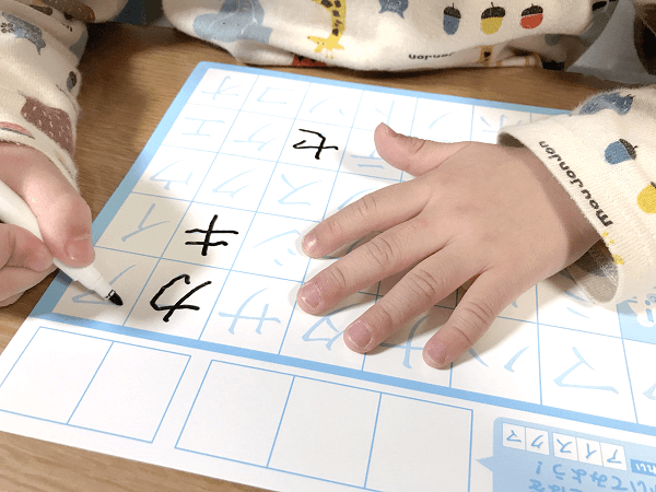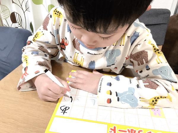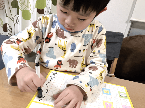 5歳の年中の息子は、ひらがなの「読み」はマスター済み。しかし、「書き」に関してはまだ見本を見て書く文字もあり、完全ではありません。文字のバランスやハネなども、おぼつかない状態です。