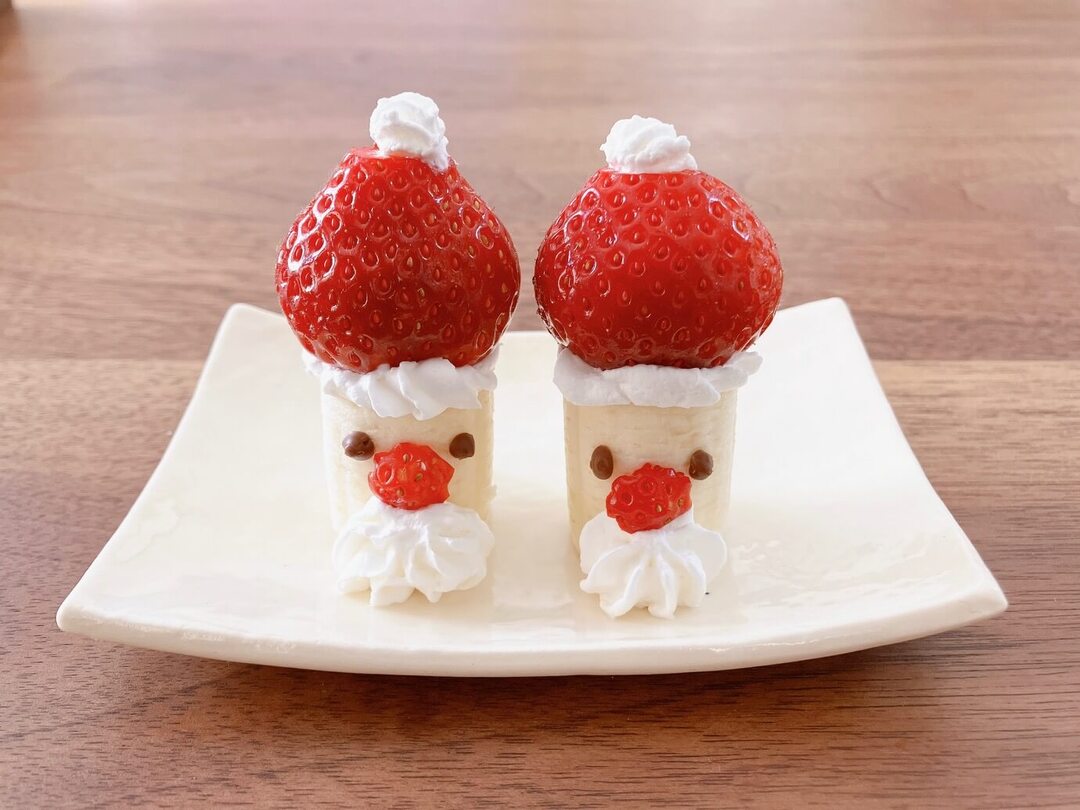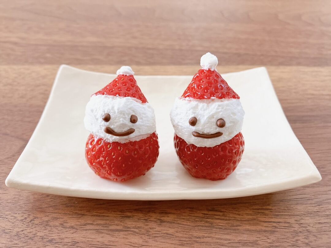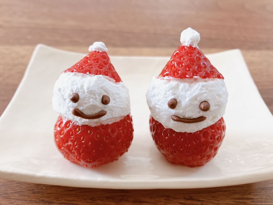 いちごと生クリームで作る定番のいちごサンタは子どものテンションアップ!チョコペンで描く顔をいろいろな表情にしても楽しいですね。