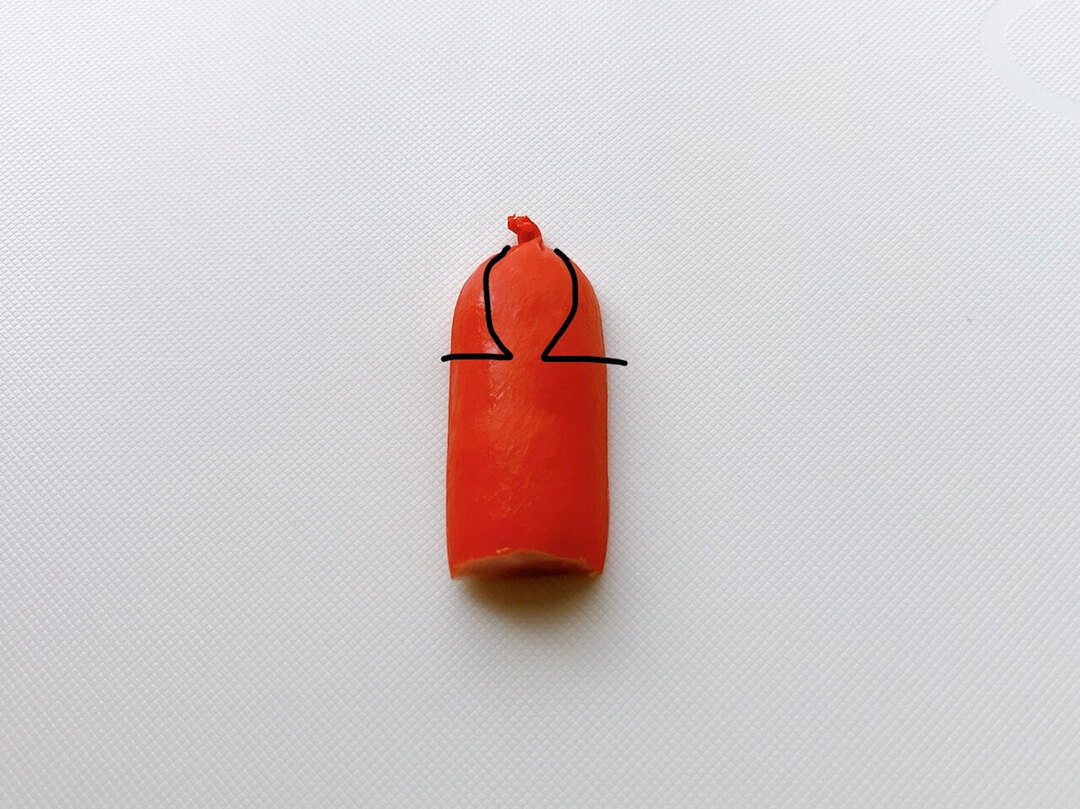 切り落としていないほうの端をキッチンバサミで炎の形に切ります。