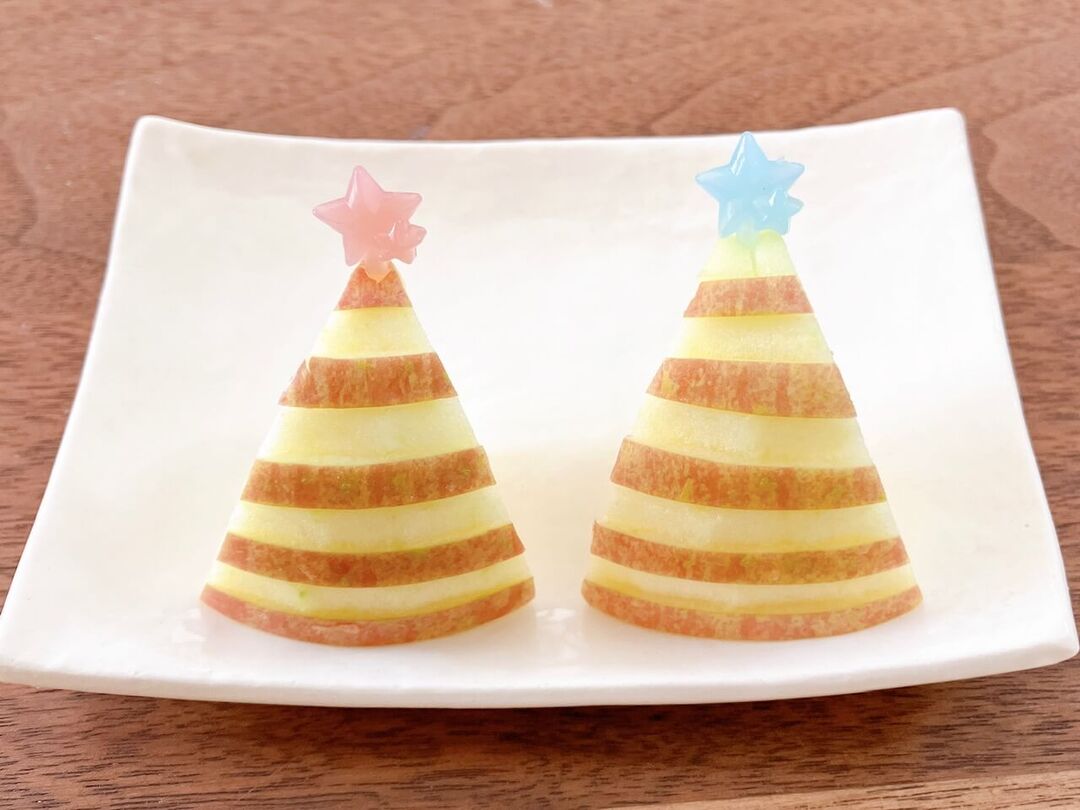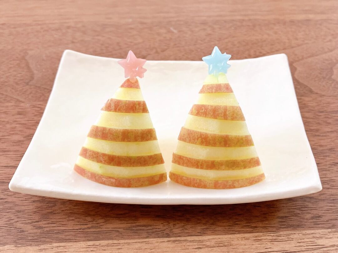 食後のデザートのりんごが、むきかたのひと手間でツリーに!簡単にできて華やかなおすすめの飾り切りです。