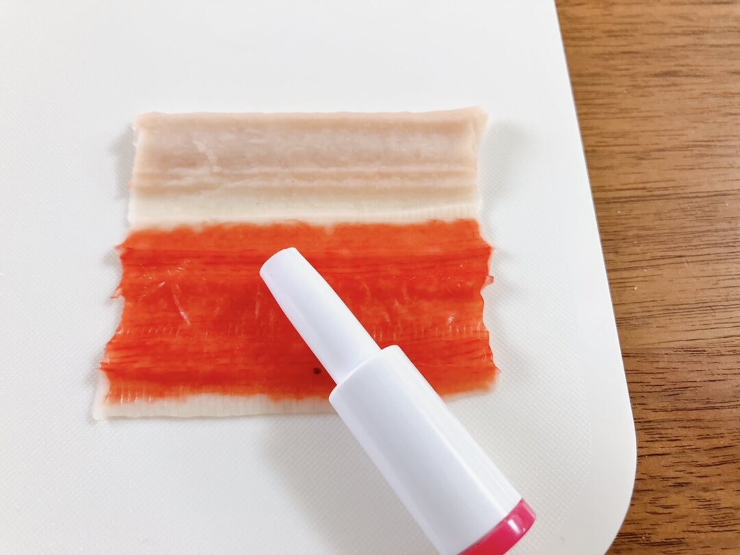 カットしたウインナーにのせることを考えてサイズを調整してください。