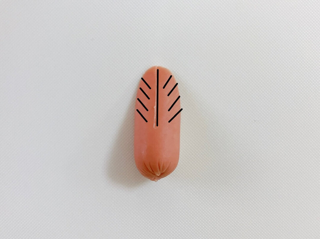 ウインナーは切り込みを入れやすい皮なしタイプを使います。
