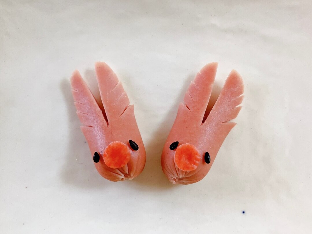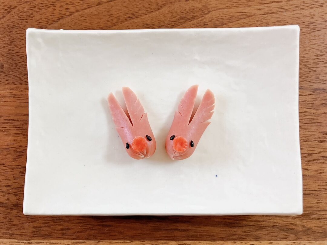 まずはデコ初心者もトライしやすいウインナーの飾り切りから。真っ赤なお鼻のトナカイを作ります。カレーやサラダのトッピングにおすすめですよ。