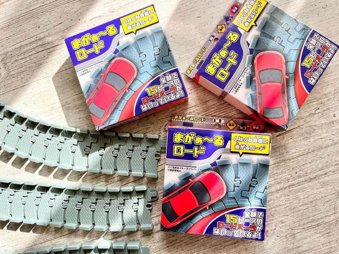 セリアの「まがぁ~るロード」は、自分の好きな形の道路が作れる楽しいおもちゃです。1セットだけでも十分楽しめますが、複数個買って遊びの幅を広げられるのが魅力。トミカとの互換性もあるので、車遊びが好きな子は年末年始のおもちゃとしておすすめです♪