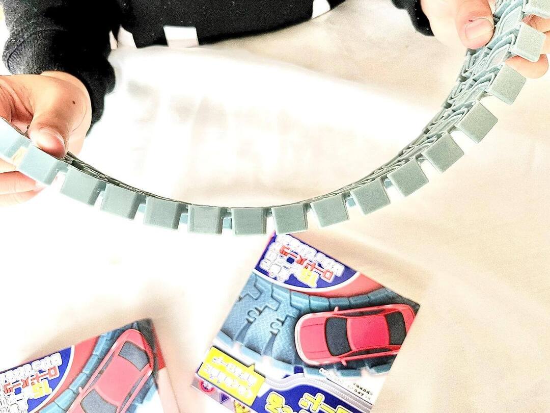 「まがぁ~るロード」のパーツは1種類なので、複数個購入して連結して遊ぶこともできます。道路が長くなればなるほどいろいろな形の道路が作れるので、まとめ買いがおすめ♪今回は3セット購入してみました。