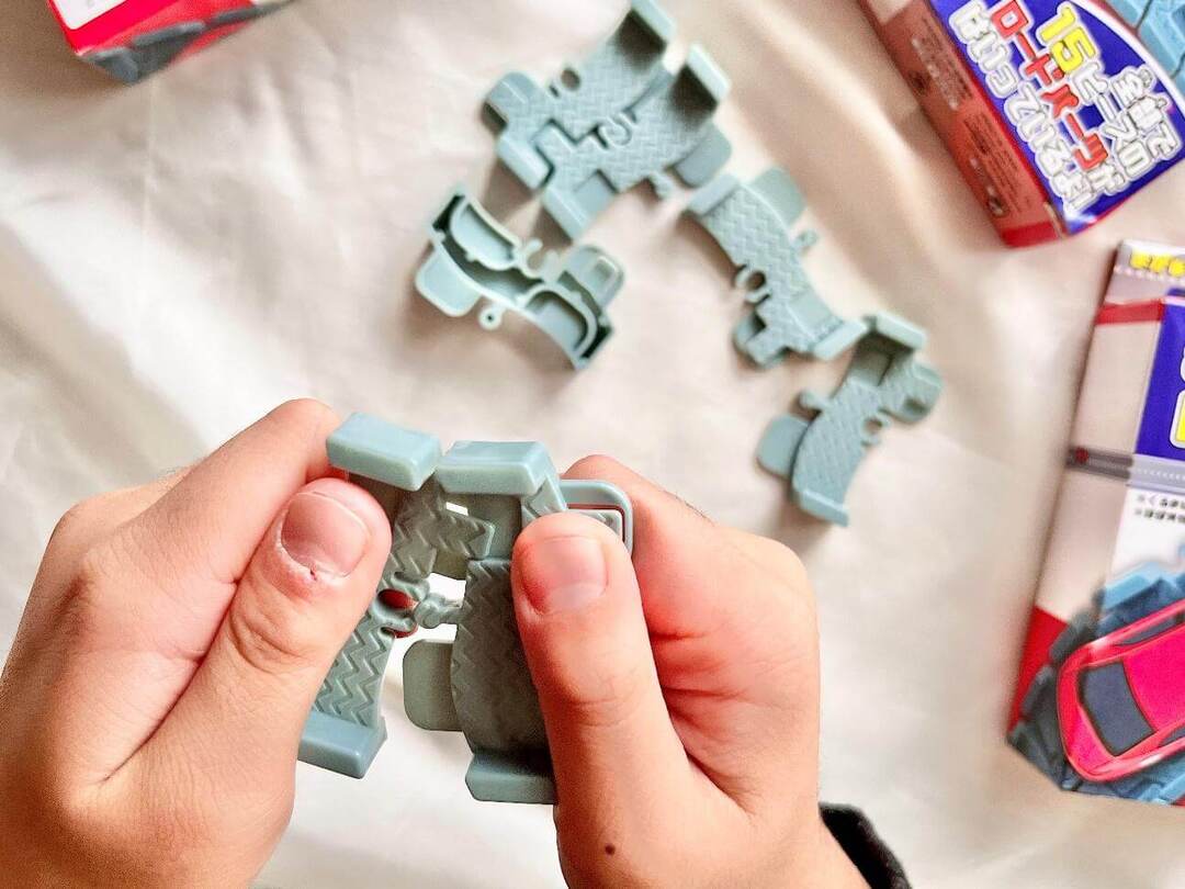 組み立て方はいたってシンプル!同じ向きにしたパーツ同士をカチッと差し込むだけでOKです。丸い部分と四角い部分の2ヶ所にはめ込む場所があるので、両方をしっかり合わせてからグッと力を入れるのがコツ。