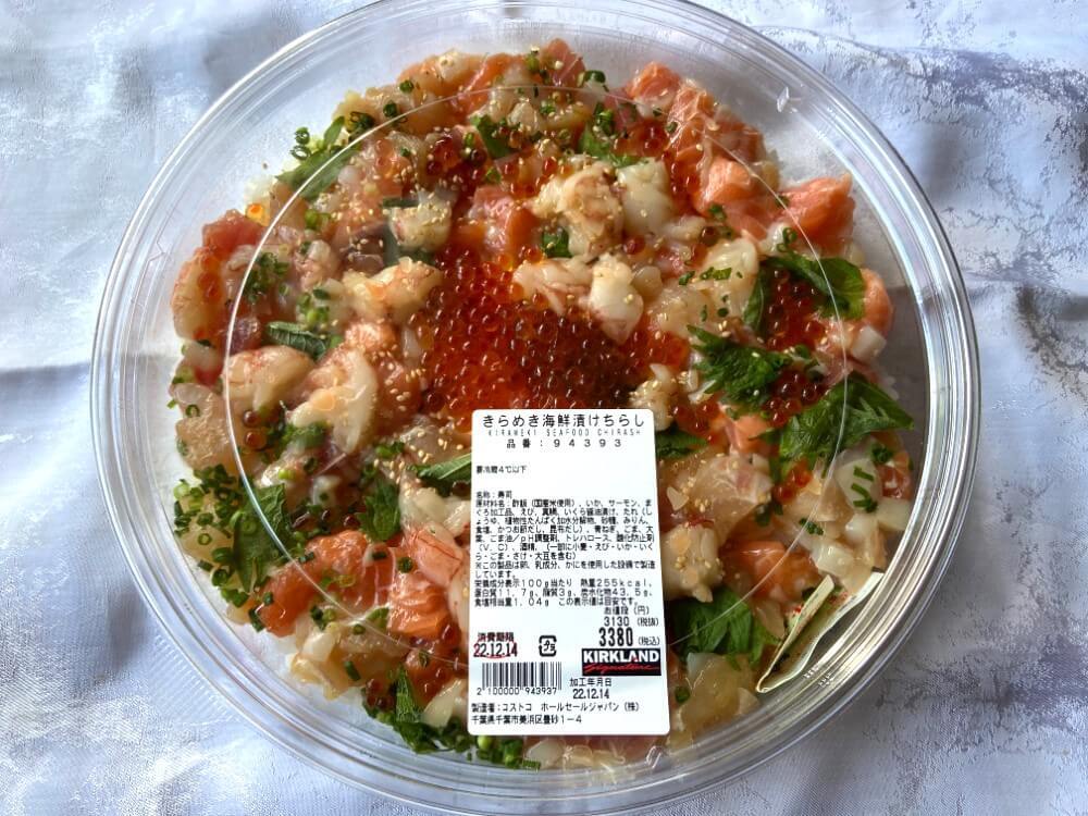 お寿司コーナーで、大きいパックにたっぷりの海鮮が散りばめられていて存在感を放っていたのは新作の「きらめき海鮮漬けちらし」。