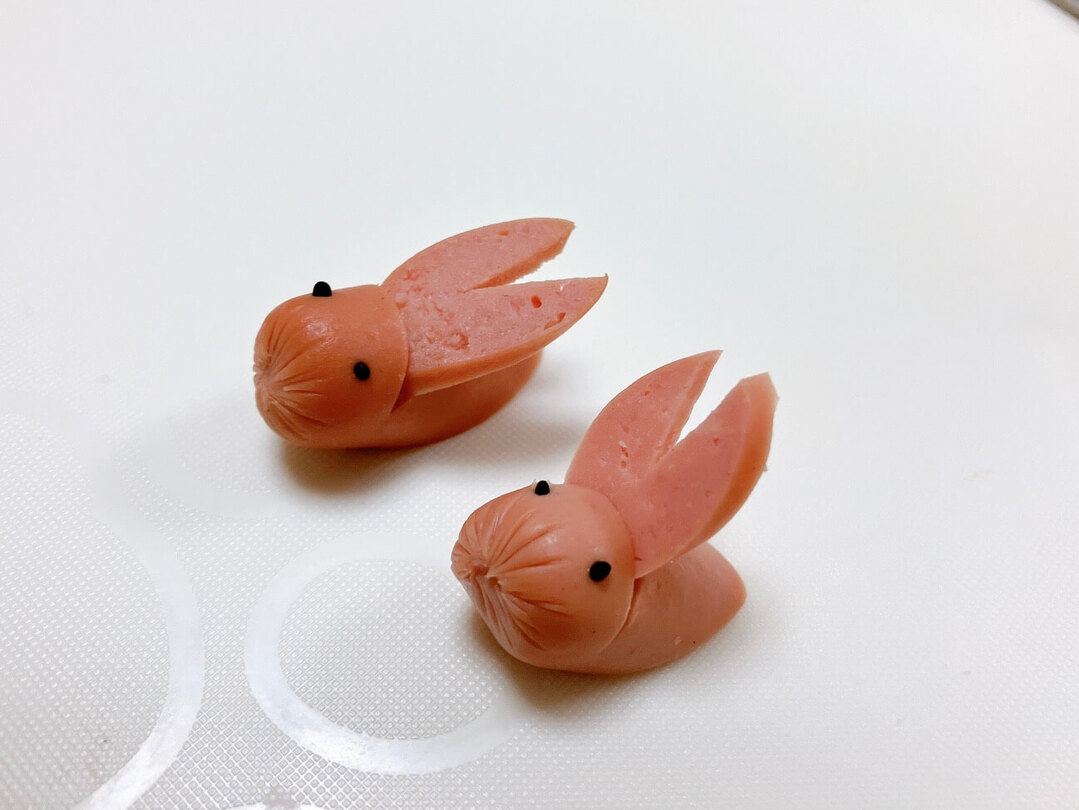 熱を入れても縮みにくい皮なしタイプを使うのがおすすめです。ウインナー1本でうさぎが2つできますよ。