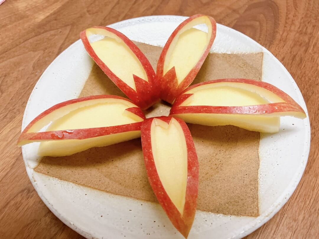 お客様にりんごを出したい時などに使えるのが、こちらの華やかな花形のりんごうさぎです。