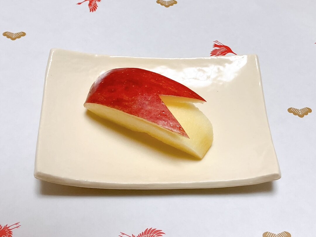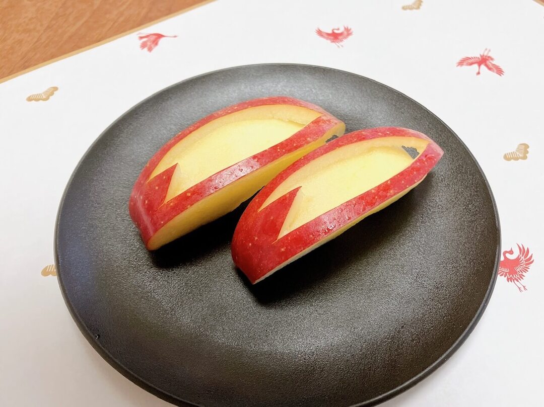 りんごの皮には、果肉以上に食物繊維やビタミンCなどが詰まっているそう。かわいいりんごうさぎで、上手に栄養をとれるといいですね。