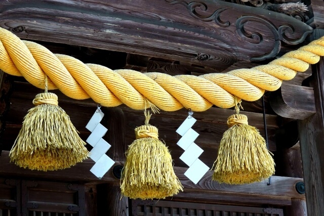 紙垂には「清浄・神聖」、しめ縄には「結界・魔除け」といった意味があることから、紙垂がつけられたしめ縄は「神様が住んでいる神聖な場所」を示しています。