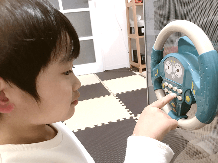 ハンドルおもちゃは車でのお出かけに持っていくのもおすすめです。運転手気分でハンドルを回してみたり、ウインカーの音を鳴らしてみたり、長距離移動のおともに大活躍!遊びの幅はいろいろと広がりそうです。